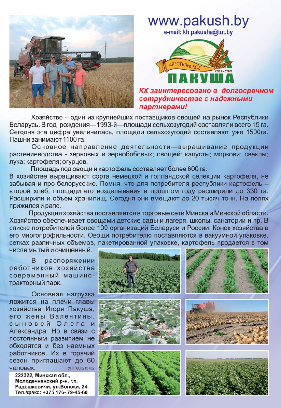 Хозяйство - один из крупнейших поставщиков овощей на рынок Республики Беларусь.