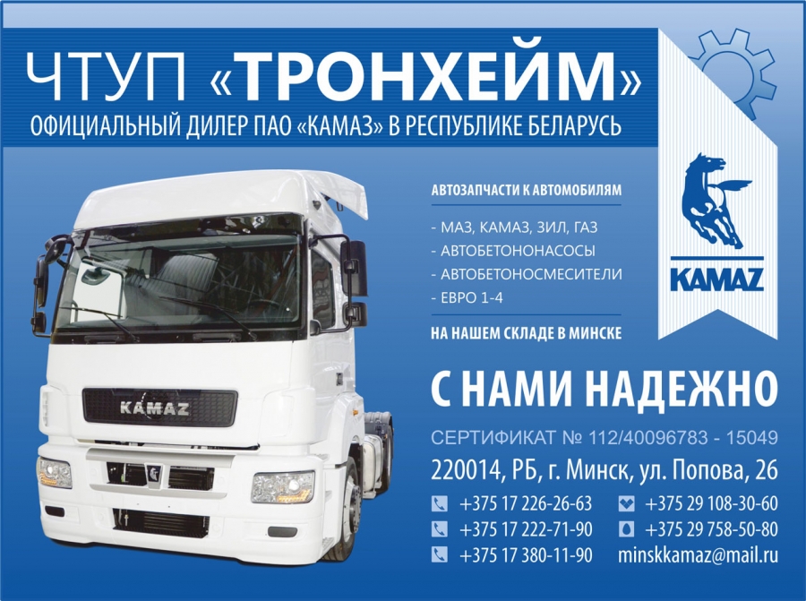 ЧТУП «Тронхейм» - официальный дилер ПАО "КАМАЗ" в Республике Беларусь.