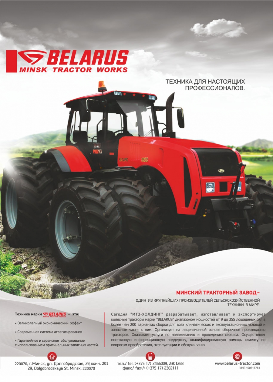 Минский тракторный завод был основан 29 мая 1946 года. Сегодня производство, на котором работает более 17 000 человек, превратилось в одного из крупнейших производителей сельскохозяйственной техники не только в странах СНГ, но и во всём мире. И знаменитый товарный знак «Беларус» представляет для нас большую ценность — не только коммерческую, но и в определённой степени патриотическую.